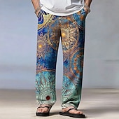HOT ! Men's Paisley Mandala Floral Print Pants Trousers Casual Pants Mid Waist Drawstring Elastic Waist Ethnic Bohemian Vintage Retro Outdoor Vacation Casual Straight Leg Trousers Spring Fall 3D Print Blue
