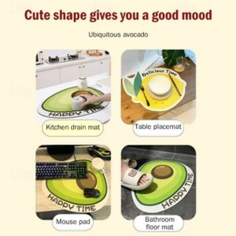 HOT ! Kitchen Drain Mat Cartoon Silicone Diatom Mud Water Absorbent Mat for Countertop Table Coffee Table Dishware Heat Resistant Trivet Non-slip Home Kitchen Accessory