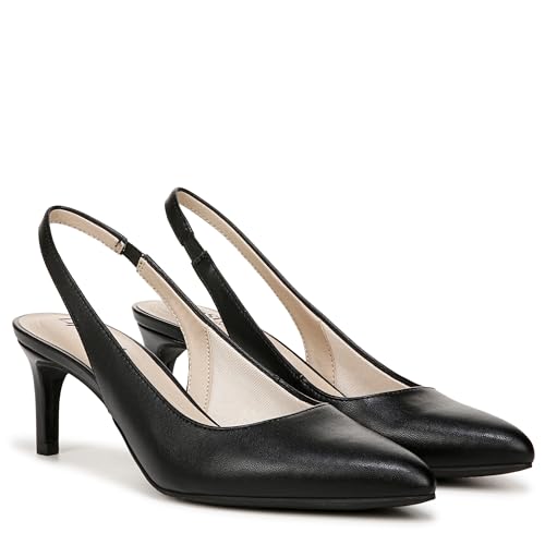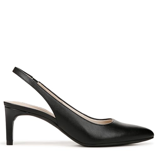 • Faux leather or microfiber upper, softly pointed toe, and slingback strap with built-in stretch for the perfect fit.