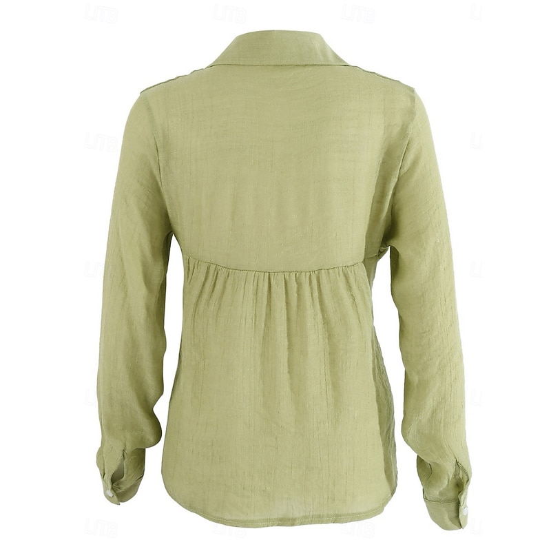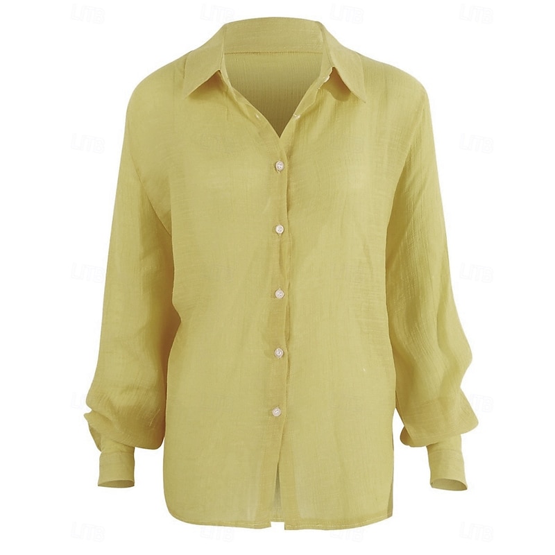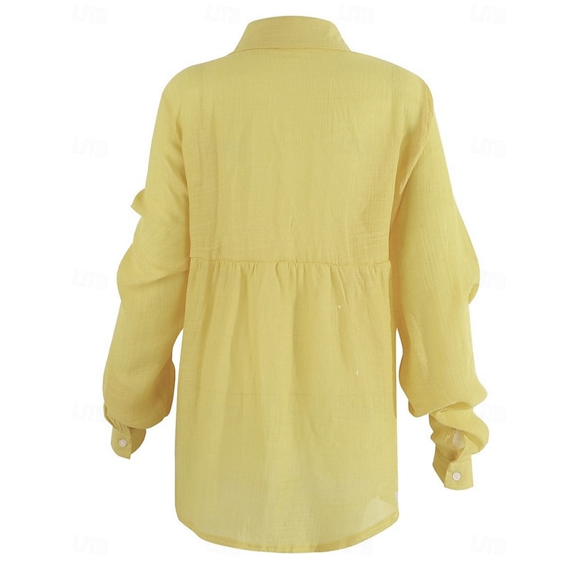 More information about Women's Shirt Cotton Linen Shirts Button Up Blouse Solid Color Basic Casual Long Sleeve Shirt Collar Regular Tops Daily Buttons Yellow Green Summer Spring