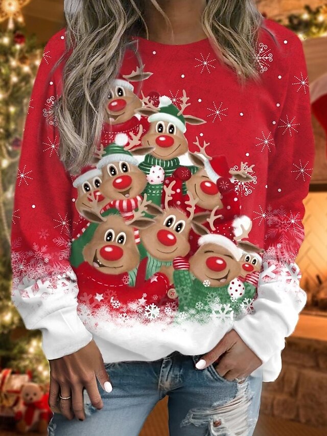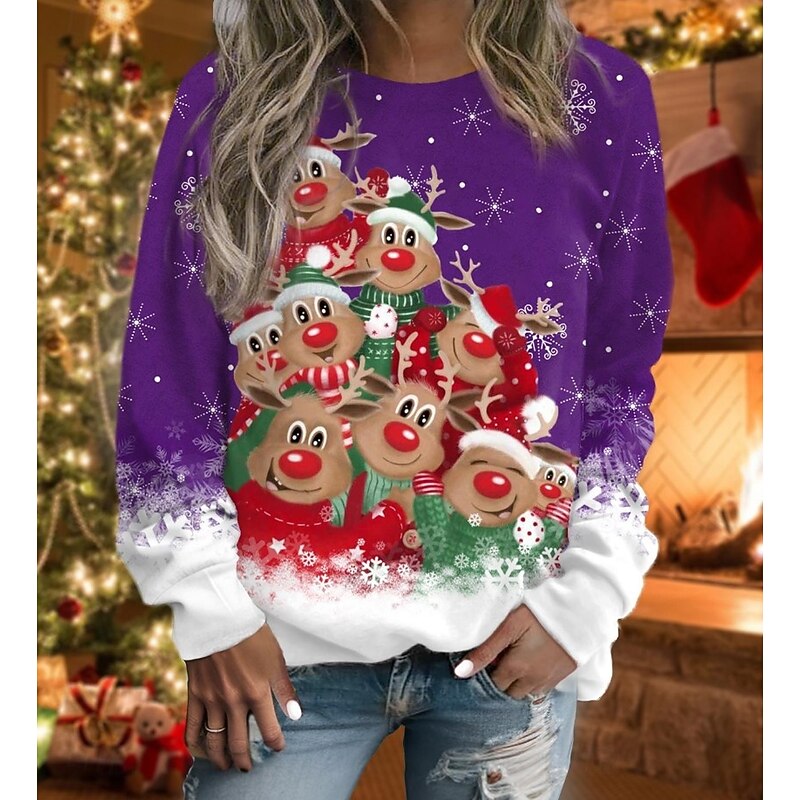More information about Women's Pullover Sweatshirt Hoodies Graphic Snowman Christmas Fashion Casual Long Sleeve Round Neck Regular Tops Street Dailywear Casual Print Black Red Blue Purple Fuchsia Fall Winter