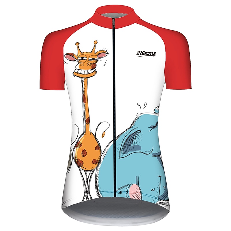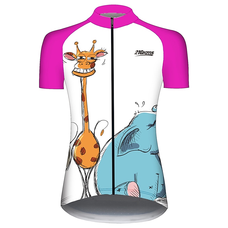 Women's Cycling Jersey Animal Elephant Giraffe Short Sleeve Bike Jersey Top with 3 Rear Pockets Mountain Bike MTB Road Bike Cycling UV Resistant Quick Dry Back Pocket Sweat-Wicking Sports Yellow Pink 11