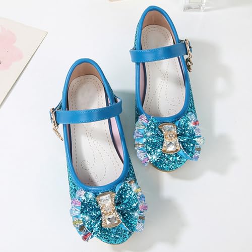 Girls Princess Flower Shoes Mary Jane Glitter Sequin Party Wedding Low Heel 4