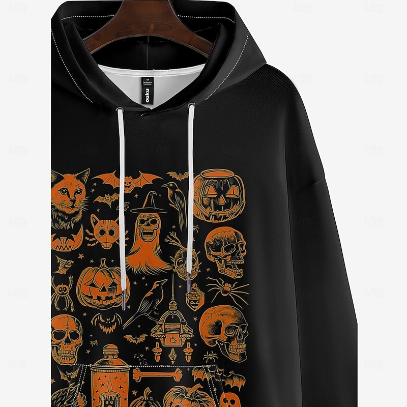 More information about Halloween Men's Graphic Halloween pattern Hoodie Hoodies Sweatshirt Vacation Daily Long Sleeve Hooded Vacation Sports Outdoor Going out Black Printing Winter Spring & Fall Designer