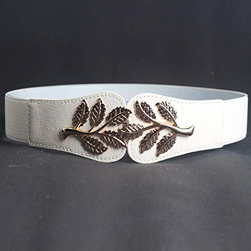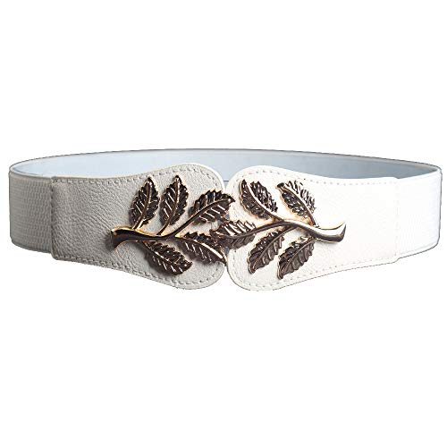 More information about Hello My Life&Apparel Gold Plated Leaf Buckle Elastic Stretch Waist Belts for Dress (White, Large)