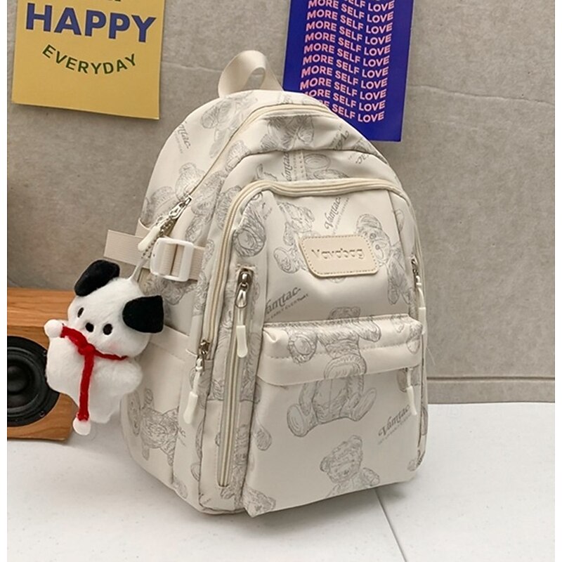 $32.99 - Women's Beige Printed School Backpack with Cute Plush Keychain, Lightweight Large Capacity Bookbag for Teen Girls, College, and Casual Daily Use, Available in Two Sizes 2025. Shop for cheap College Backpacks online? Buy at lightinthebox.com on sale today!