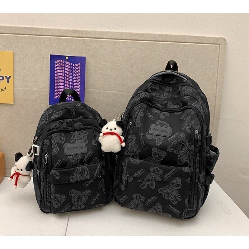 HOT ! Women's Beige Printed School Backpack with Cute Plush Keychain, Lightweight Large Capacity Bookbag for Teen Girls, College, and Casual Daily Use, Available in Two Sizes