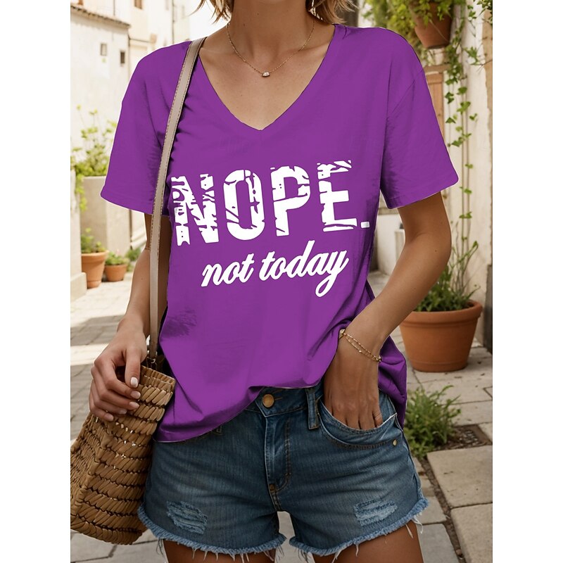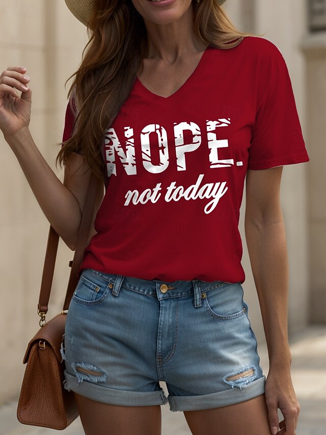 HOT ! Women's T Shirt Graphic Letter Vintage Stylish Classic Short Sleeve V Neck Regular Tops Daily Print Black White Pink Red Blue Summer Spring