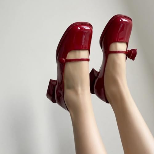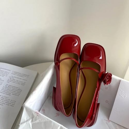 Cute Rose Strap Mary Janes for Women Block Low Heel Pumps Emo Ballet Flats Slip On Ballerina Shoes Low Top Breathable Lightweight Leather Square Toes No Slip Casual Retro Dress Shoes Casual Streetwear 6