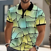 More information about Men's Abstract Geometic Polo Short Sleeve Polo Shirts Collared Shirts Casual Street Athleisure Daily Wear 3D Print Buttons Summer Yellow Blue Purple