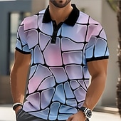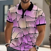 Men's Abstract Geometic Polo Short Sleeve Polo Shirts Collared Shirts Casual Street Athleisure Daily Wear 3D Print Buttons Summer Yellow Blue Purple 7