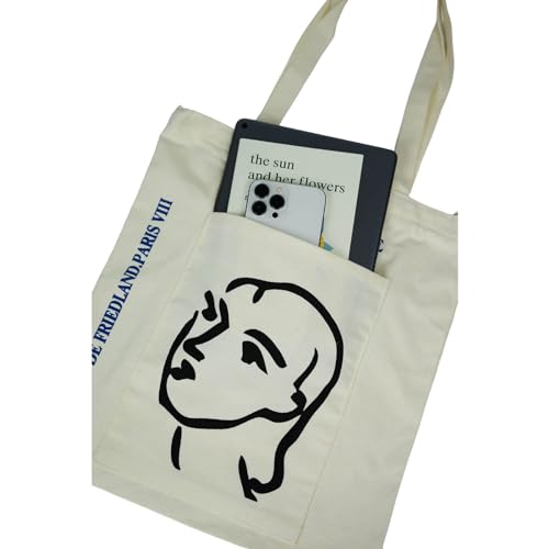HOT ! ZAIIVE Canvas Tote Bag for Women, Stylish Canvas Handbag Shoulder Tote Bag with Zipper, Cute Casual Canvas Beach Tote with Matisse Design for Shopping and Travel