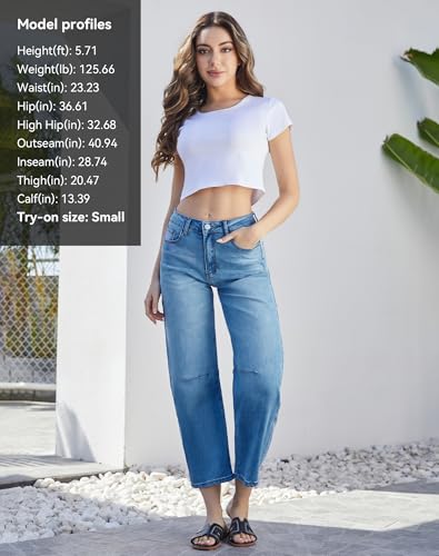 Women’s Barrel Jeans High Waisted Ankle Horseshoe Stretchy Ankle Denim Pants 5