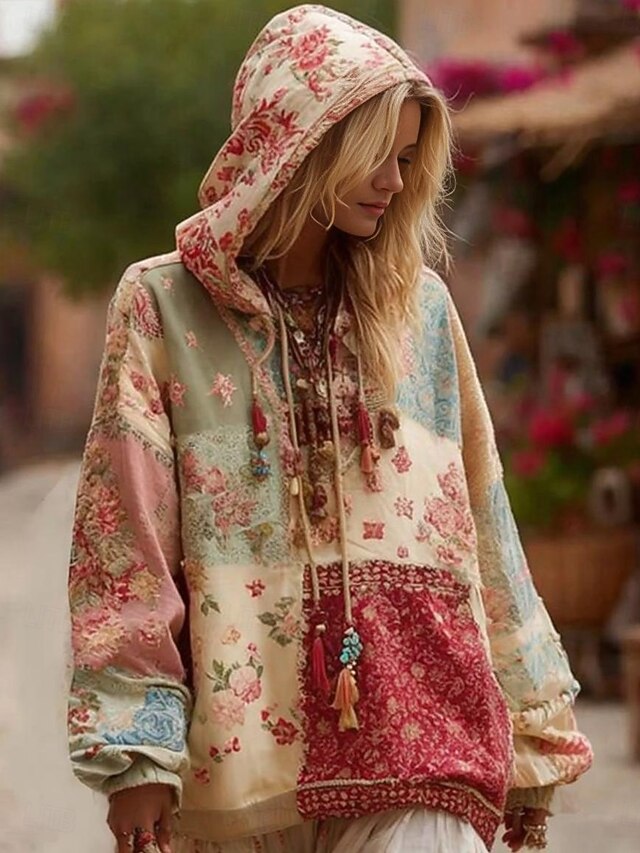 More information about Women's 3D Print Vintage Boho Hoodie Patchwork Hoodie Sweatshirt Floral Pullover Sweatshirt Oversized Casual Warm Active Hooded Street Dailywear Patchwork Pink Spring Fall Winter