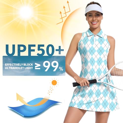 • Womens Tennis Dress in UPF50+ Materials: Tennis dresses for women with shorts is made of 4-way strech, moisture wicking and UPF50+ materials, which can efficiently protect your skin and neck from harmful UV rays during any outdoor activities, allowing you to feel relaxed.
