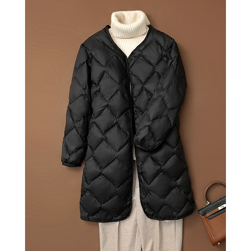 More information about Women's Down Jacket Coat Warm Comfortable Buttons Fashion Plain Outdoor Vacation Going out Weekend Single Breasted Long V Neck Regular Fit Long Sleeve Outerwear Black Dark Green Khaki Fall Winter