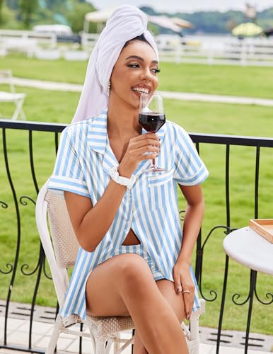 Ekouaer Womens Silk Satin Pajamas Sets 2 Piece Short Sleeve Sleepwear Button Down Top and Shorts Pjs Lounge Wear Sets S-XXL 5