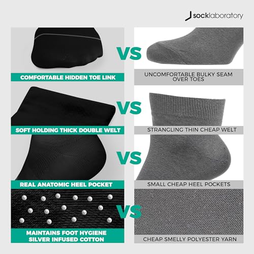 HOT ! Quarter Socks - Silver Infused Cotton - Odor Resistant, Breathable - White/Black/Monochrome