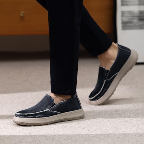Bernal Men's Loafers Canvas Loafers Slip-on Loafers Shoes Men's Vintage Flat Boat Shoes Walking Work Shoes Comfortable Light-Weight Casual Indoor Outdoor Walking Slippers 6