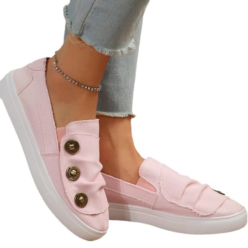 HOT ! Women's Canvas Casual Buttons Flats Shoes Slip-on Round Toe Breathable Comfortable Lightweight Ballet Low Top Lazy Walking Shoes