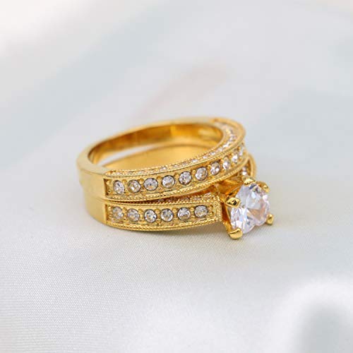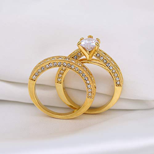 trending ! Yellow Gold Plated Heart cut 7mm CZ Womens Wedding Ring Sets Bridal Sets Engagement Rings