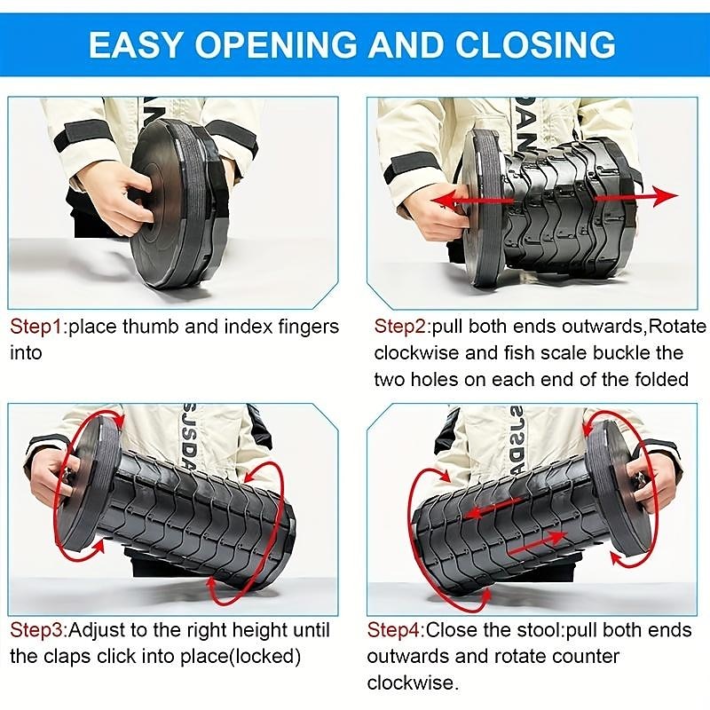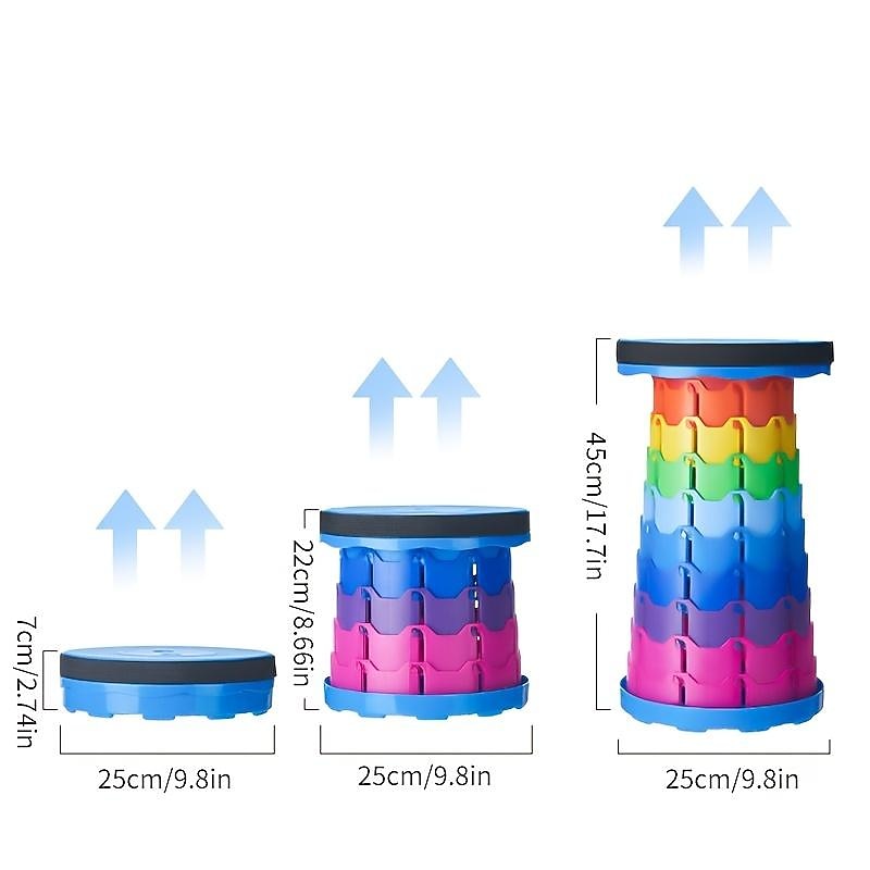 Highlights - Easy to carry: Weighing only 2.5 lbs and folding into a compact 9.8" x 2.7" disc, this portable stool is incredibly easy to carry and store. Whether you're backpacking, traveling, or simply need an extra seat for your car, this stool can conveniently fit in any space. - Adjustable height: With the ability to adjust the height between 25~45cm, this folding stool can be tailored to fit the needs of any occasion. It is suitable for all age groups, ensuring maximum comfort and convenience. - Versatile applications: This portable stool is perfect for a variety of scenarios, making it a great addition to your outdoor adventures, kitchen, bedroom, bathroom, office, or even during camping and fishing trips. Its versatility allows you to enjoy comfortable seating in any setting, whether it's a picnic, hiking, queuing, or simply relaxing in your outdoor lawn. - Perfect gift: This retractable folding stool is a versatile and practical gift for friends who enjoy outdoor activities such as fishing, waiting in line, or picnicking. They will appreciate its convenience and practicality, making it the perfect gift for any occasion.