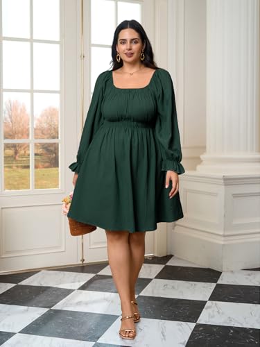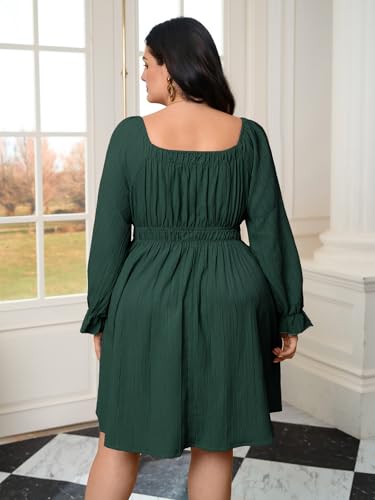 • Design: Curvy women's short dress features a flattering square neckline, smocked elastic waist for a defined shape, long bishop sleeves with ruffle elastic cuffs, and a playful A-line mini skirt that flows beautifully