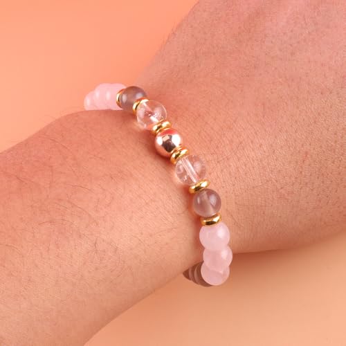 • Natural Stone Stretch Bracelet: Our stone bracelets are made of 8mm natural stone and carefully polished, connected with an elastic cord. The bracelet length is about 7.3 inches, stretchy to fit most wrists, very comfortable to wear so that you will not be bothered by the size. Completely non-reactive on sensitive skin.