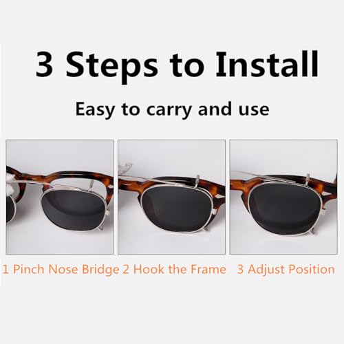 Origin: ImportedNOTE: This Clips Sunglasses only can be Clip onto the Glasses Come With it in one order, They are Matched , Which is Not a General Clips to all the others glassesClip on over Glasses Sunglasses : Clip-on Sunglasses lense are made to Change Regular Clear Lense Glasses into Sunglasses without needing to buy New Frames.It is a Practical and Fashionable Accessories,You can Switch up Your Look Whenever You WantRound Glasses Sunglasses : Classic Circle Frames Looks Great on Most People,Suits Both Men and Women,Lightweight Frame Makes Them Easy to Carry Around,Can be Stored in your Pocket or Purse When not in useHigh Quality Material: Lightweight Plastic Arm gives you Stress-free,One Piece Nose Pad Gives you a Feeling of Unstressed Comfort,Metal Hinge for Assured Temple Closure and DurabilityPerfectly Suits Indoor and Ourdoor,Colored Lense Provide UV protection when Spending time Outdoors,Beach Vacation, Driving ,Embrace Clip-ons, and Enjoy the Benefits of Clear Vision and sleek UV protection in one PackSunglasses lens width: 49 mm (1.93 inches), lens height: 49 mm (1.93 inches), temple length: 140 mm (5.51 inches) and nose bridge: 19 mm(0.75 inches). The package sunglasses*1, Pu Pocket *1, microfiber pouch*1(Can be used for Cleaning Cloth ) Perfect for everyday use. superior materials and excellent craftsmanship ensure long-lasting durability.