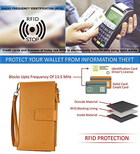 More information about Mou Meraki Women's Large Capacity Rfid Blocking Genuine Leather Wristlet Wallet Clutch Organizer with Zipper Pocket