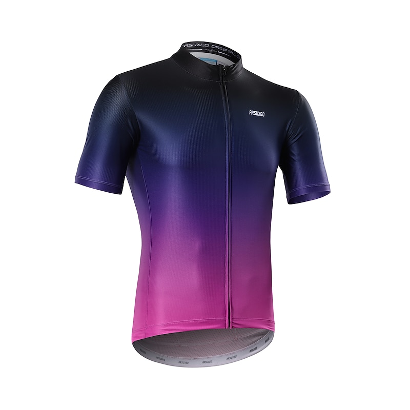 Men's Cycling Jersey Gradient Short Sleeve Bike Jersey with 3 Rear Pockets Reflective Strips Back Pocket Elastic Anti-skidding Sports Black Yellow Dark Purple Clothing Apparel 24