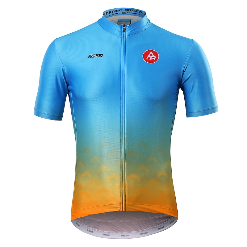 Highlights Cycling shirt made of polyester and spandex, Thin light weight mesh style materials offer superb wicking and breathability to move sweat away from the body so it quickly evaporates leaving you dry and comfortable when you are cycling hard. 【3+1 Back Pockets】:3 rear pockets are the standard for storing multi-tools, snacks, and anything other mid-ride essentials, a zippered security pocket to keep valuables. 【Breathable Wicking 】:The cycling jersey short sleeves is made of quick-dry fabric , which offers moisture management to keep you dry and comfortable during your riding. 【Anti-slip Silicone Hem 】a longer rear hem provides extra coverage, the silicone gripper keeps the jersey never moving up when cycling. 【Reflective strip】:The cycling jersey's back is designed as a reflective element to improve your visibility when riding in poor light, with bright color and Gradient graphics to help motorists see you, keep you safe for day and night cycling. 【Full-length semi-auto lock zipper】:Full-length semi-auto lock zipper on the cycling jersey can be flipped up and tugged open with one hand for easy venting, allows you to cool down on long, hot rides.