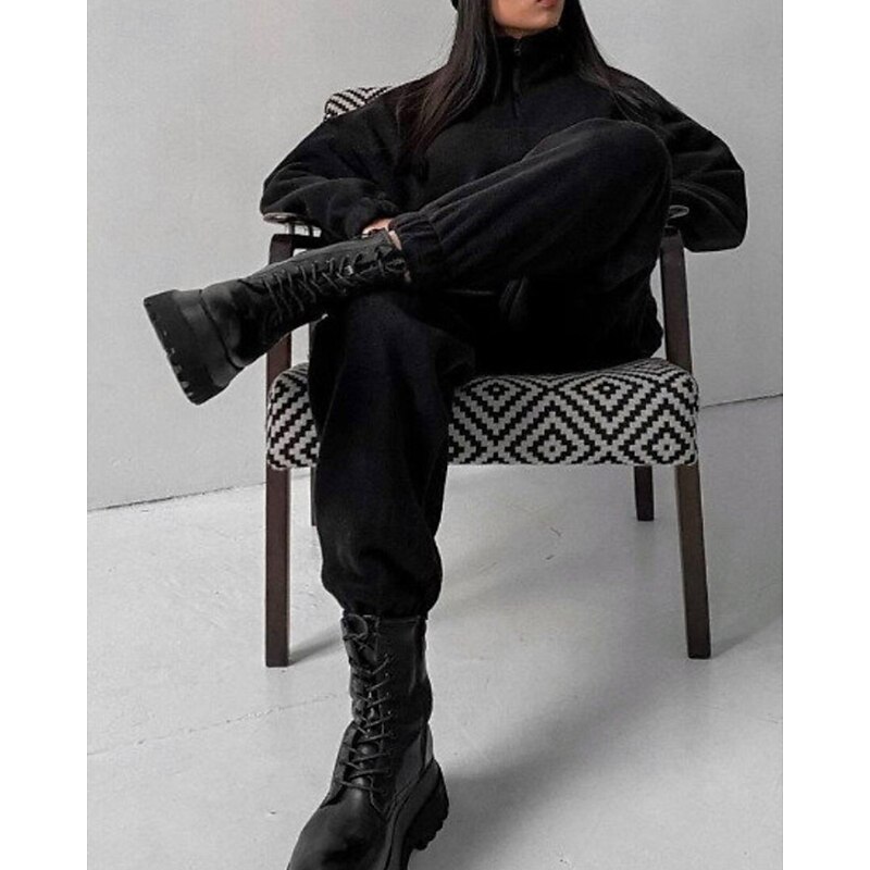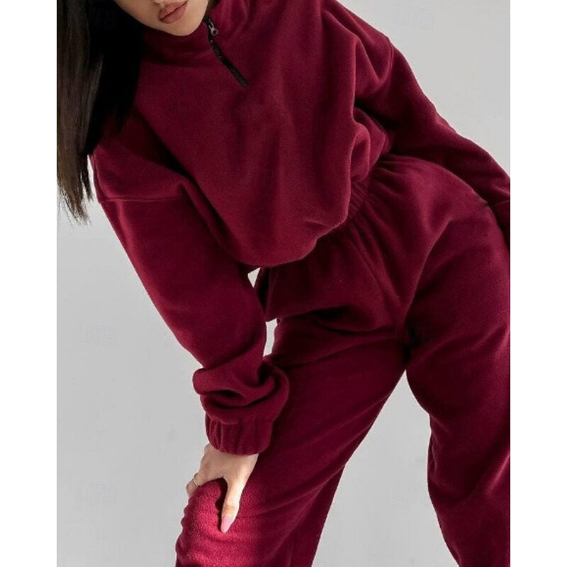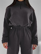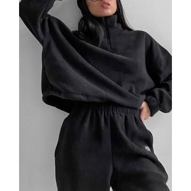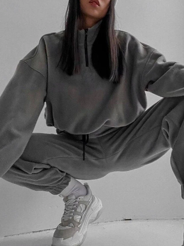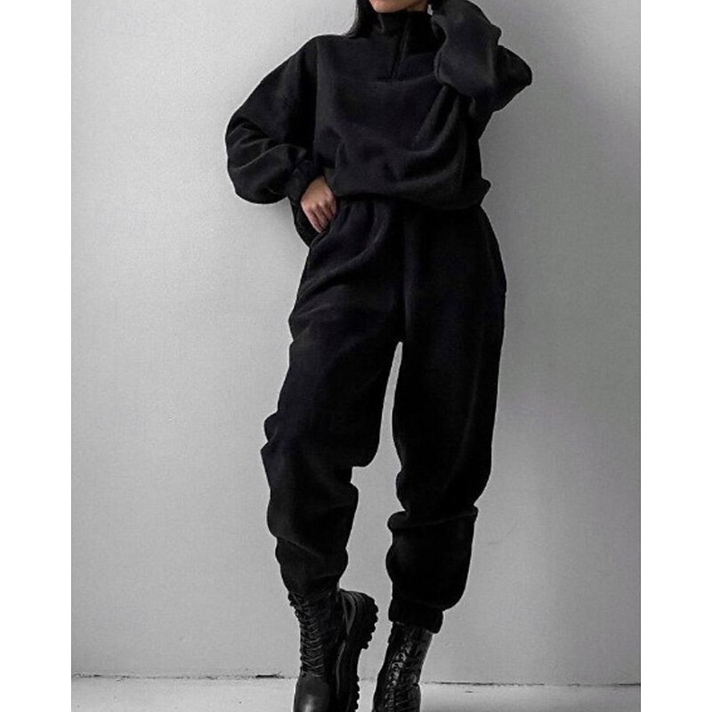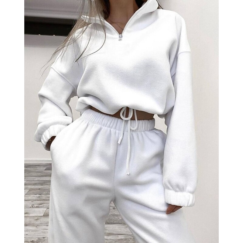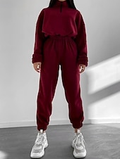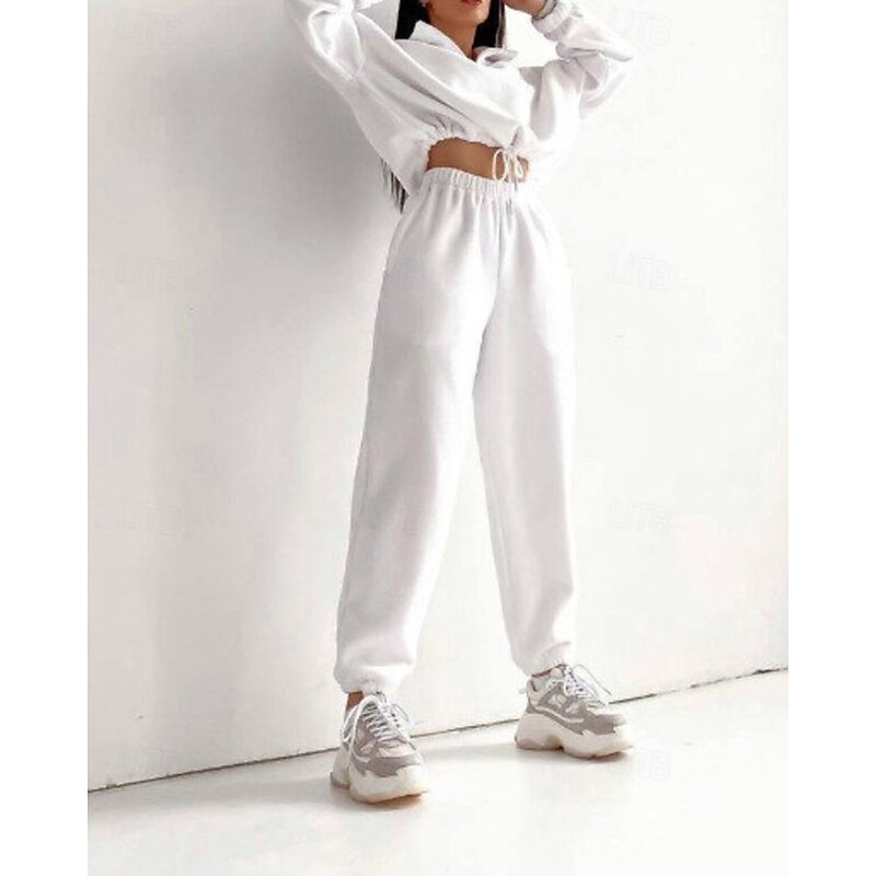 More information about Women's Active Streetwear Blouse Hoodie Pants Sets Long Sleeve Hooded Solid Color Drawstring Outdoor Daily Holiday Black White Red Fall Regular Fit