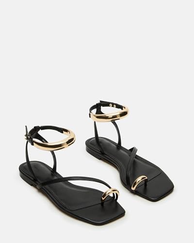 Toe Ring Flats Sandals for Women Square Toe Strappy Flat Sandals Casual Summer Shoes