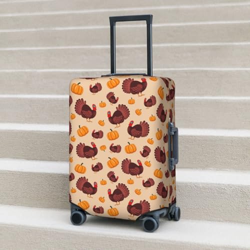 HOT ! Thanksgiving Turkey And Pumpkin Print Luggage Cover For Suitcase,Washable Elastic Travel Suitcase Protector With Zipper Closure And Bottom Buckle – Fits 18-32" Luggage-Small