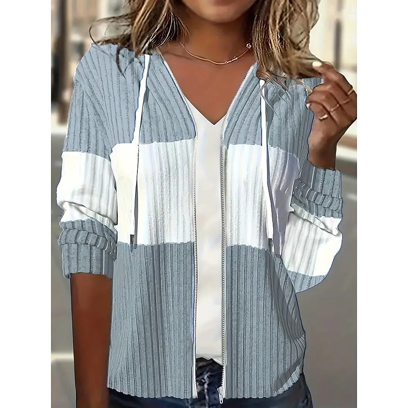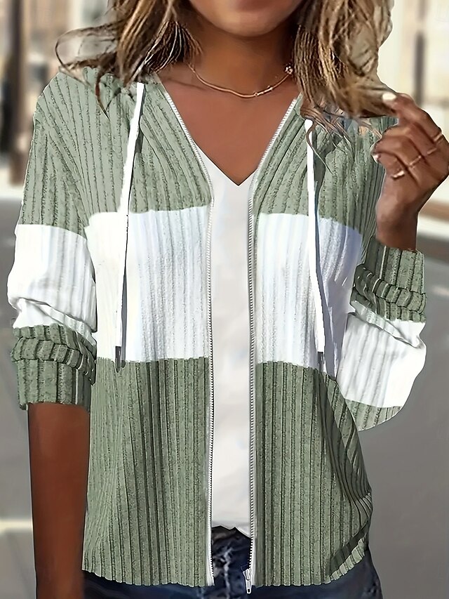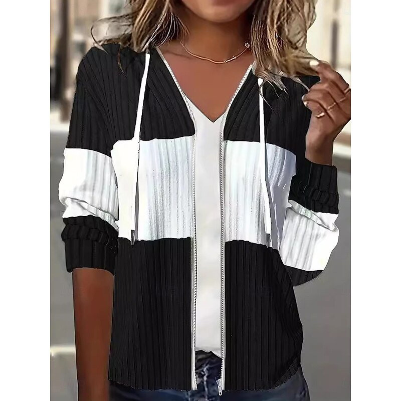 HOT ! Women's Hoodied Jacket Dailywear Patchwork Color Block Warm Vintage Regular Fit Outerwear Long Sleeve Fall Black S