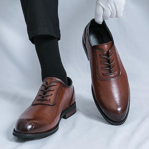 Mens Leather Printed Luxury Formal Oxfords Classic Modern Lace Up Business Dress Shoes Wedding Party Brogue Shoes 7