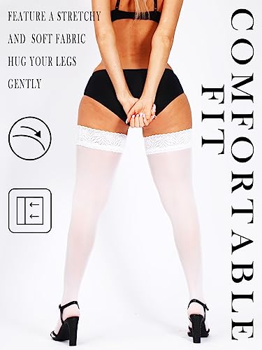 More information about SUREPOCH Curve Semi Sheer Thigh High Stockings Silicone Lace Top Pantyhose for Women, 1-2 Pairs