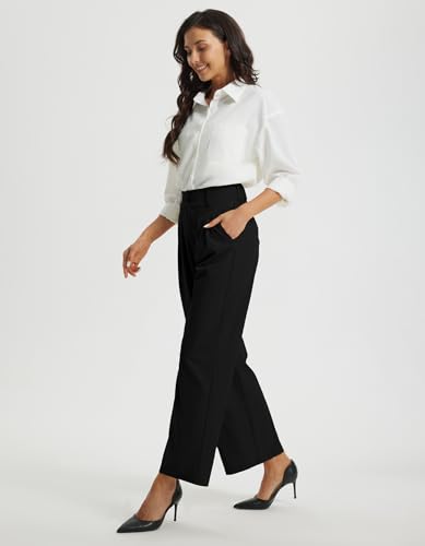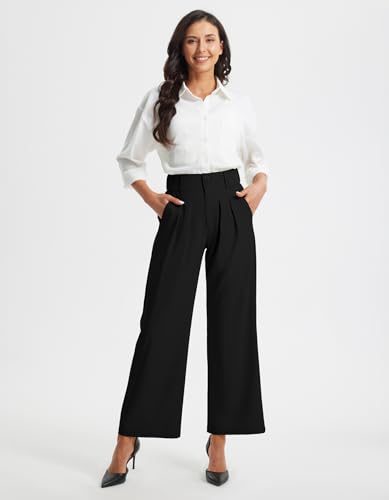 Libin Women's Wide Leg Dress Pants High Waisted Button Pleated Business Work Pants Casual Slacks Trousers with Pockets