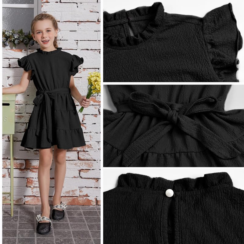 More information about CHILDRENSTAR Girls Flutter Sleeve Dress Ruffle Tiered Formal Party Dresses Belted for Kids 3-13Y