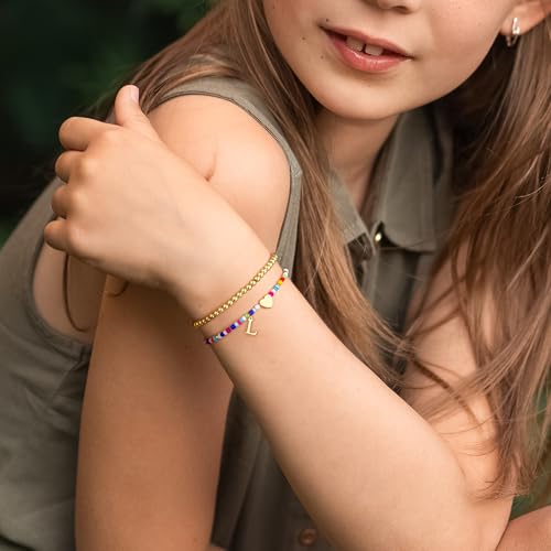 Ritach Colorful Initial Bracelets for Girls Women - Real Gold Plated Stretchable Beaded Bracelets Cute Heart Initial Bracelets for Girls Stackable Bracelets for Women Teen Girl Gifts 7
