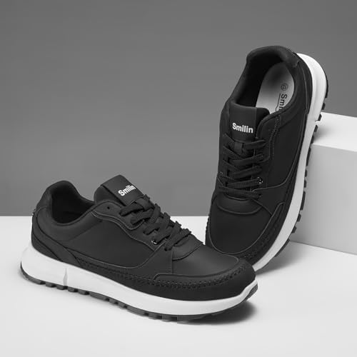 SMILIN Men's Casual Dress Sneakers, Non Slip Wide Walking Sneakers for Daily Comfort, Vegan Leather Tennis Shoes for Men