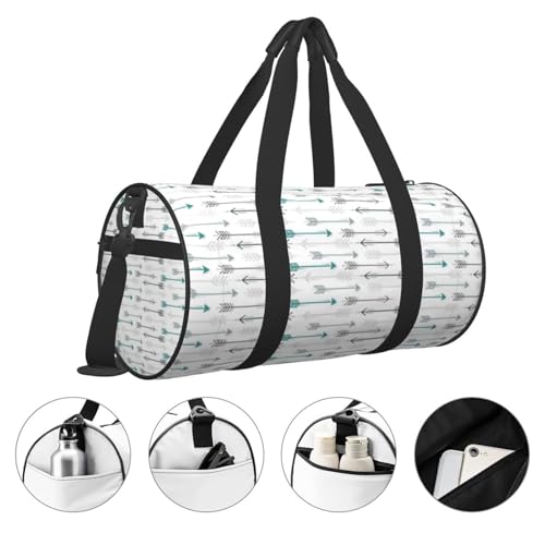 More information about Retro Arrow Grey Teal Large Capacity Round Travel Bag,Sport Duffel Bag With Sponge Padding & Organizer Pockets For Gym Beach Trips
