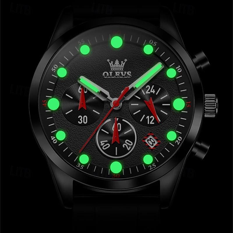 2024 New Olevs Brand Men'S Watches Chronograph Calendar 24-Hour Indication Quartz Watch Three Eyes Six Hands Waterproof Sports Men'S Wristwatch 4