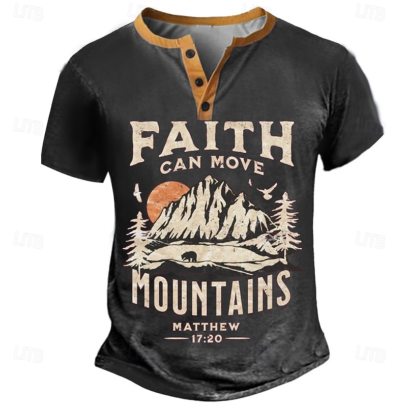More information about Men's Vintage Mountain T Shirt Henley Shirt Short Sleeve Designer Retro Vintage Street Casual Daily Summer Spring Army Green Dark Brown Black Navy Blue Henley Henley T-Shirt