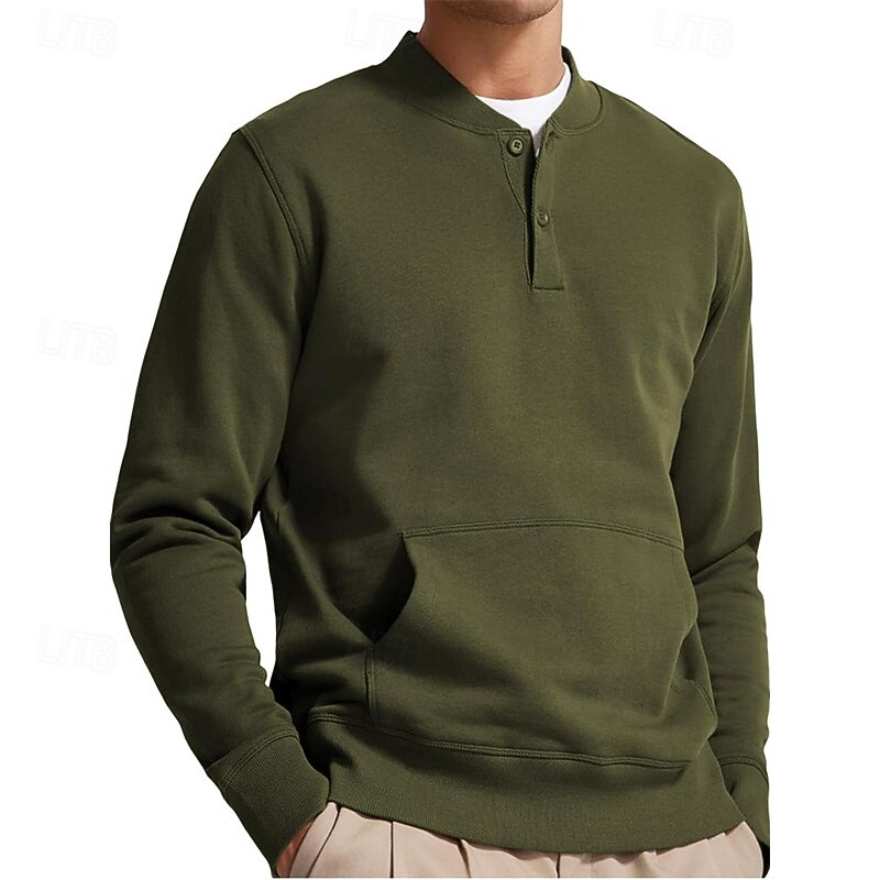 Highlights [Fabric]: Expertly crafted from a high-quality polyester blend, this men's sweatshirt offers a breathable and soft texture, ideal for ensuring comfort throughout the day. The fabric's micro-elasticity adds flexibility, allowing for easy movement whether you're engaging in outdoor activities or relaxing indoors. [Fit]: Designed with a regular fit, this sweatshirt ensures a relaxed yet tailored silhouette that suits a variety of body types. The ribbed cuffs and hem provide a snug fit, helping to maintain warmth during cooler spring and fall days. [Design Highlights]: Featuring a chic standing collar, the sweatshirt includes a functional front pocket for added convenience. The buttoned neckline offers adjustable ventilation, while the plain design adds versatility, making it easy to pair with different outfits. [Occasions]: Perfect for an array of events, this sweatshirt seamlessly transitions from sports and outdoor activities to casual daily wear or even holiday gatherings. Its stylish yet practical design makes it a staple for any wardrobe, ideal for daily wear, streetwear style, or casual outings. [Size Range]: Available in a wide range of colors including White, Pink, Dark Gray, Purple, Coffee, Light Blue, Army Green, and Apricot, this sweatshirt comes in sizes S, M, L, XL, 2XL, 3XL, and 4XL, ensuring a suitable fit for many body types.