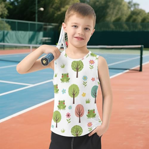 J JOYSAY Spring Frog Flowers Trees Boys Tank Top Sleeveless Muscle Shirts fast Dry Workout Sport Active Kids T-Shirts 3-15T