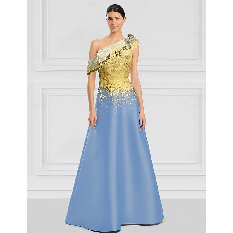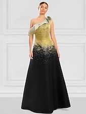 More information about Black and Gold Ombre Jacquard A-Line Evening Gown Elegant Dress Formal Wedding Floor Length Sleeveless Off Shoulder with Ruffles