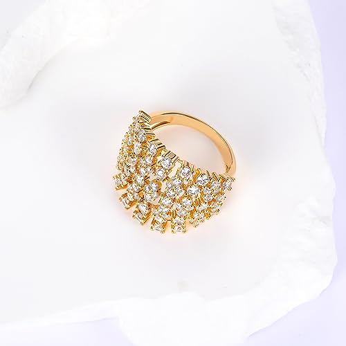 MDFUN Wedding Rings for Women Multi-Row Wide Engagement Ring 18K Yellow Gold Plated Cubic Zirconia Band Promise Eternity Ring for Women Size 5-10 6