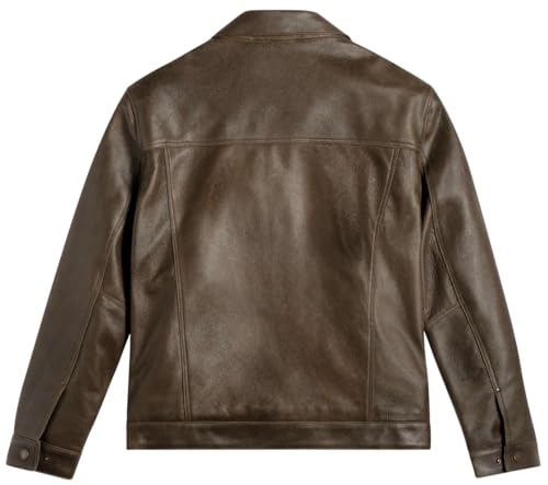 • Made from genuine real leather, this trucker jacket offers a rugged yet refined texture that becomes more characterful with age. The durable material ensures long-lasting wear while delivering a rich, timeless look that elevates everyday style.